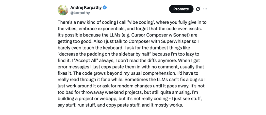 你有没有听说过 “vibe coding”?这个概念最早是从我发的一个推文火起来的。