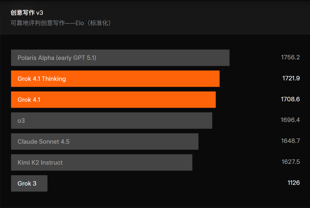 换句话说,Grok 4.1 已经进入全球最强“创意写作梯队”。