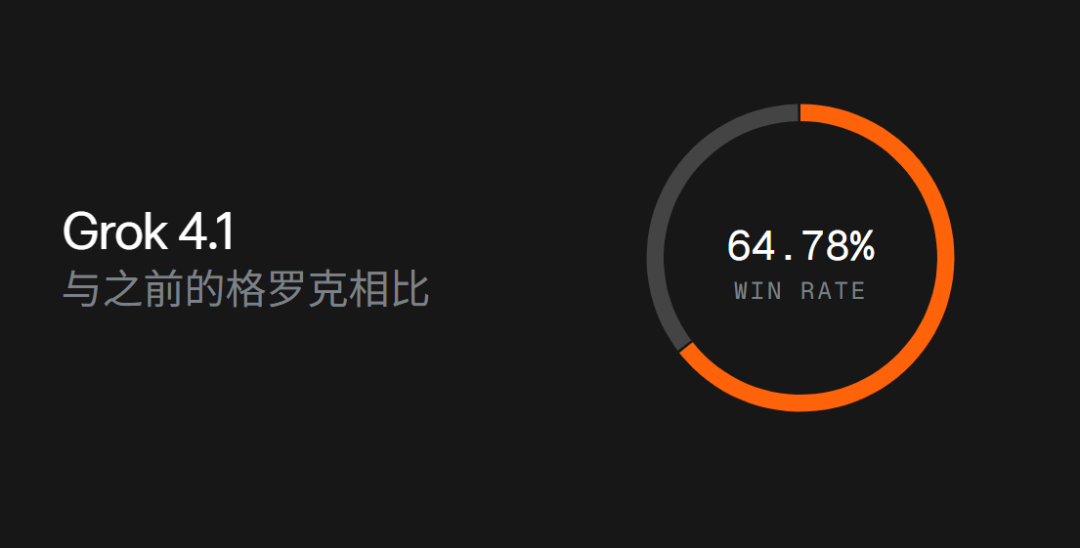 这一阶段最直观的结果,被清晰地体现在那张 64.78% 的饼图上:在双盲对比、用户不知情的前提下,Grok 4.1 的回答有 64.78% 的概率被用户选为“更好”。换句话说,面对同样的问题,用户在超过六成的情况下更偏爱 Grok 4.1。